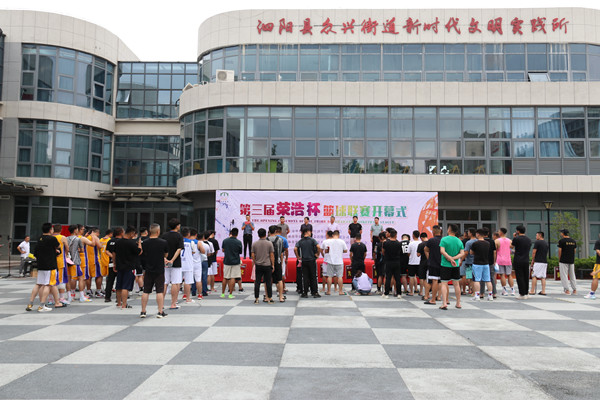 江蘇泗陽(yáng)經(jīng)濟(jì)開(kāi)發(fā)區(qū)組織人事局副局長(zhǎng)衡瑋致開(kāi)幕詞,并宣布第三屆“榮浩杯”籃球聯(lián)賽正式開(kāi)始,他說(shuō),此次籃球聯(lián)賽是活躍地區(qū)文體生活、促進(jìn)青年交流的一次盛會(huì),也是響應(yīng)黨中央“發(fā)展體育運(yùn)動(dòng),增強(qiáng)人民體質(zhì)”方針政策,貫徹我縣打造“健康泗陽(yáng)、體育強(qiáng)縣”目標(biāo)的有力舉措。希望各代表隊(duì)發(fā)揚(yáng)體育道德風(fēng)尚,以最佳的競(jìng)技狀態(tài),賽出風(fēng)格、賽出水平、賽出友誼。